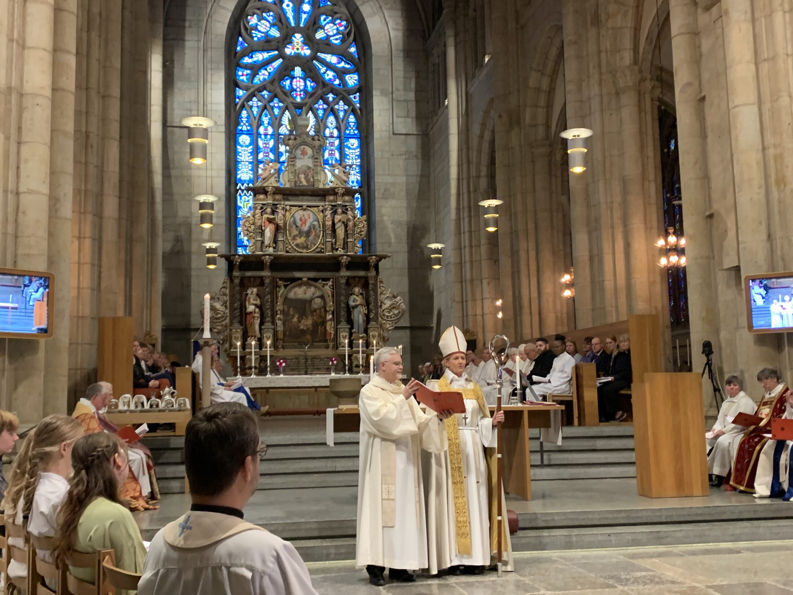 – ”Jag förstår att det finns så mycket tankar som handlar om att ’det lilla som jag har att komma med är inte värt att berätta, det är bättre att någon annan som är mycket kunnigare tar den rollen,’” sade biskopen. ”Men nej, det är inte det som Jesus säger. Han säger ge av ditt liv, dela det som gör att du tror och lever. Det är inte positionerna vi ska ge varandra, det är livet vi ska ge varandra.” Biskopen berättade också om hur hon i en telefonkö fått frågan ”Vill du ha en mänsklig kontakt?” Till skratt från gudstjänstbesökarna frågade sig biskopen ”Vad svarar man på det?”
