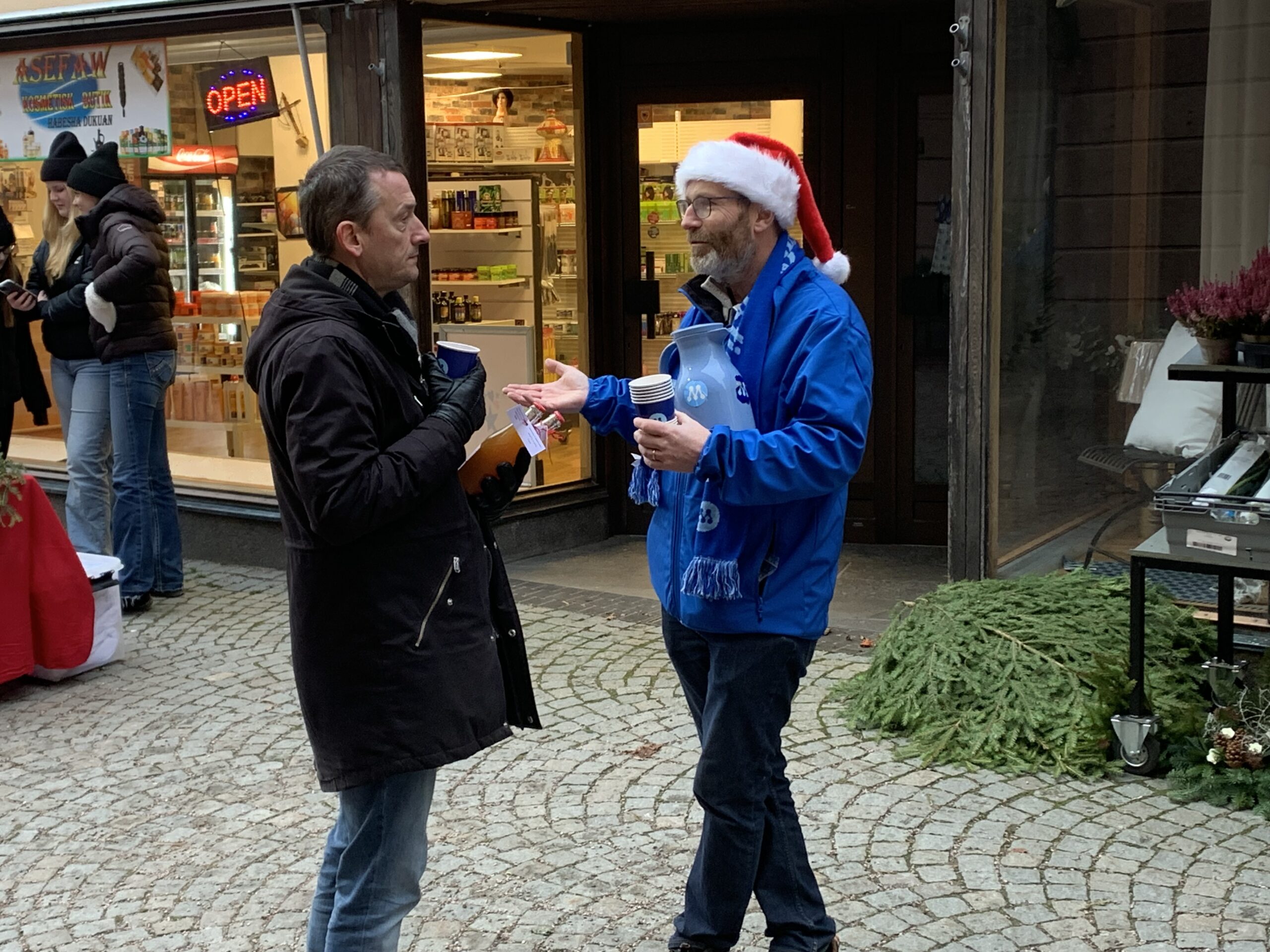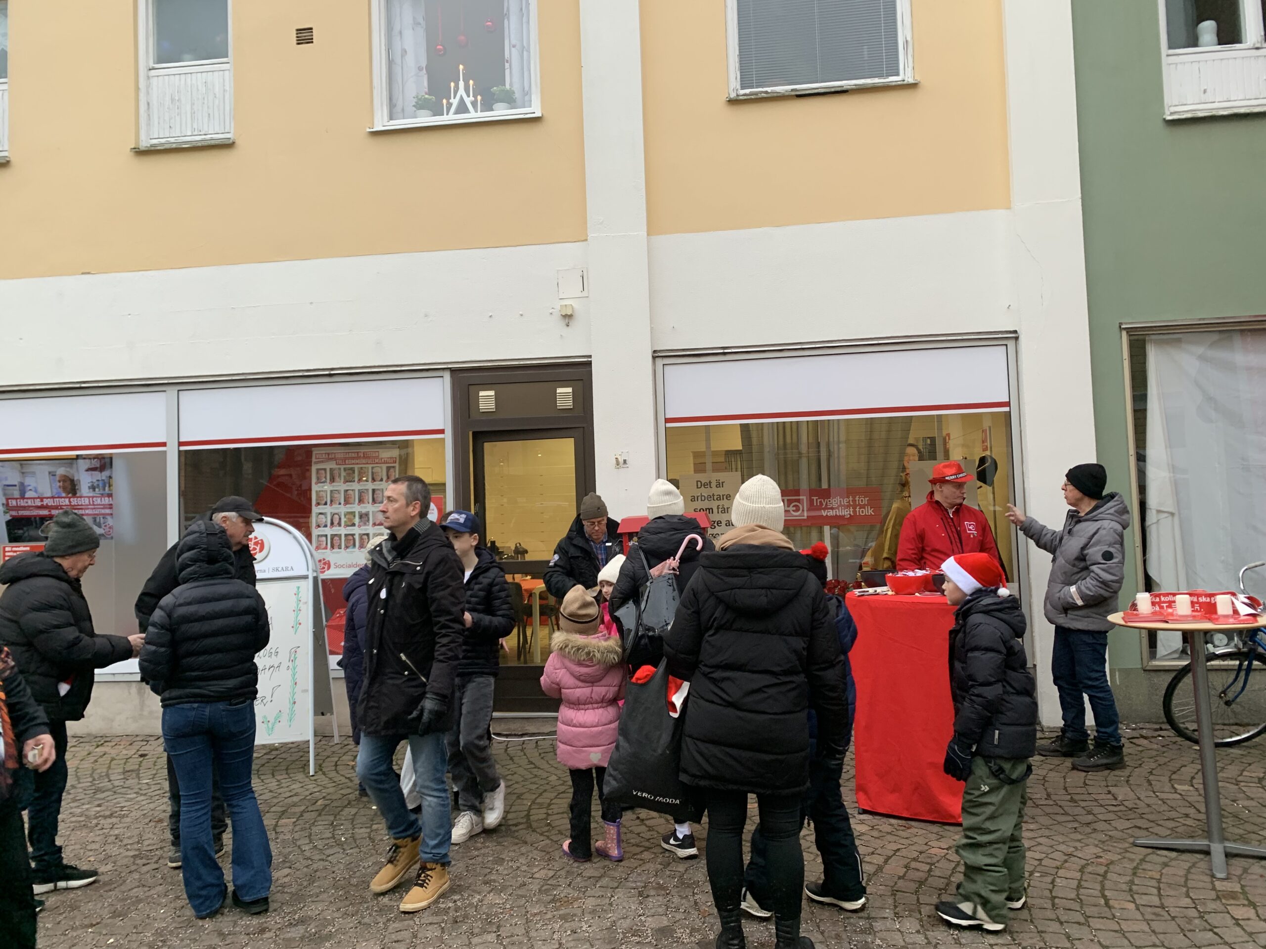 De politiska partierna passade på att möta invånare och bjöd in till samtal över kaffe, blåbärssaft och pepparkakor. Medborgarna uppskattade möjligheten att prata om allt från lokalpolitik till julens betydelse i Skara.