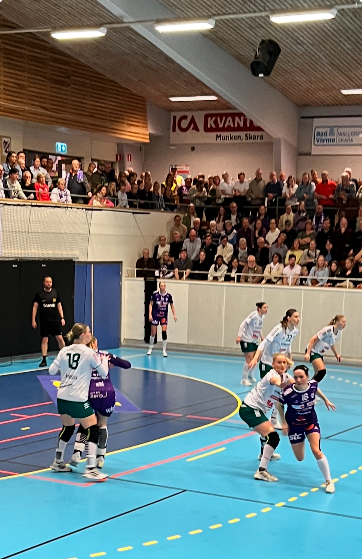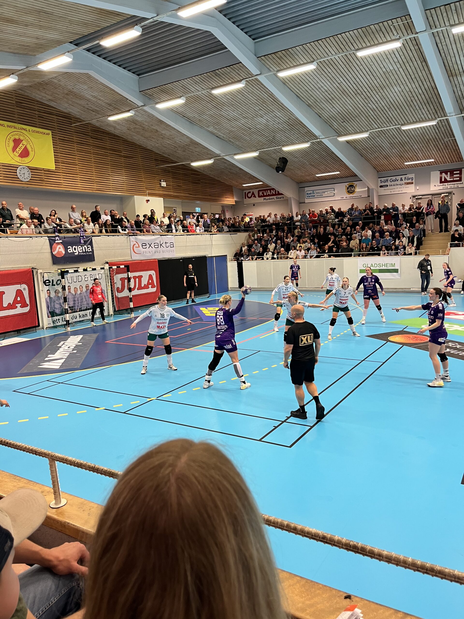 Inför ett fullsatt Skara Idrottshall med ett kokande hemmastöd tog Skara ett viktigt första steg mot final – nu väntar en minst lika laddad returmatch i Nacka.