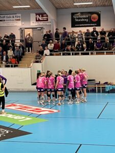 Publiken bjöds dessutom på lite extra färg – Skara spelade i rosa tröjor som en del av Rosabandetkampanjen, vilket skapade fin inramning i hallen.